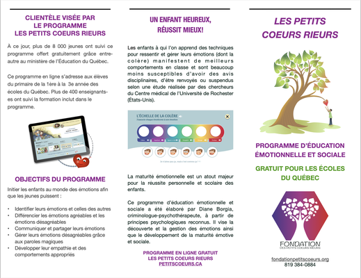 Le programme clé en main Les Petits Cœurs Rieurs est le seul programme, à offrir aux enfants des outils tangibles pour les aider à découvrir et à gérer adéquatement leurs émotions en agissant sur leur principale cause.