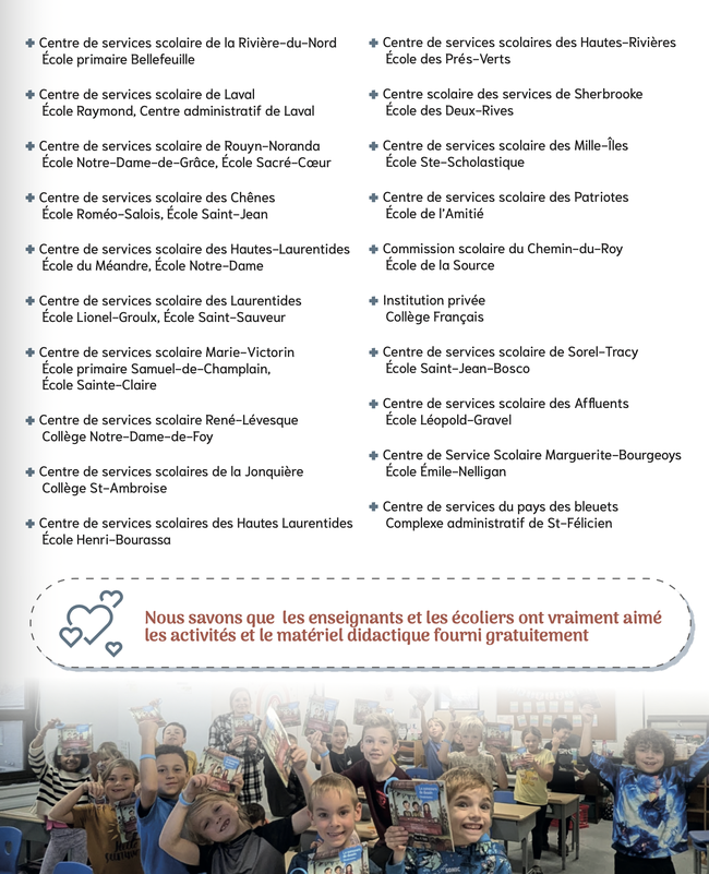 Pour les enfants de toutes les écoles du primaire du Québec.